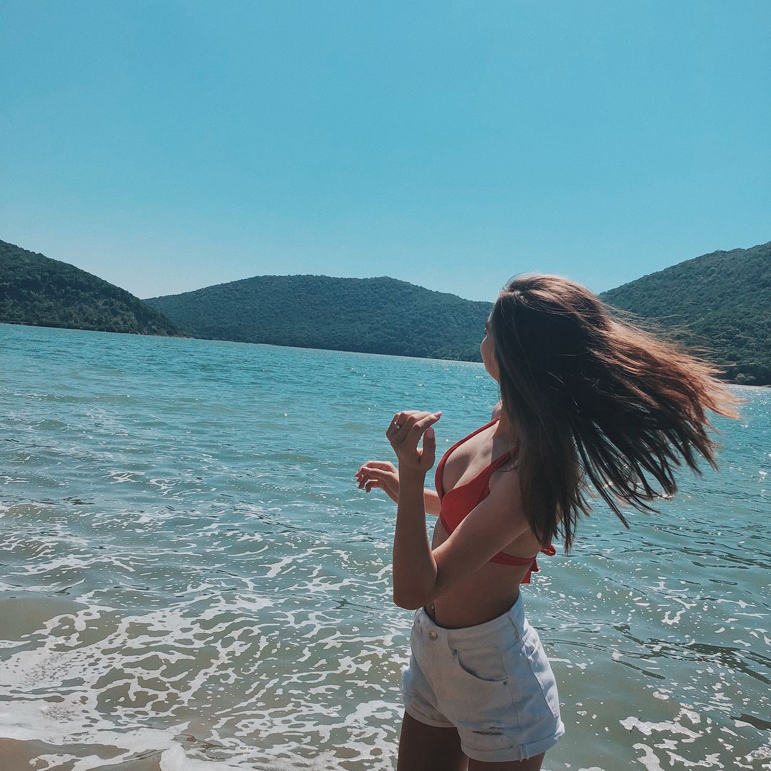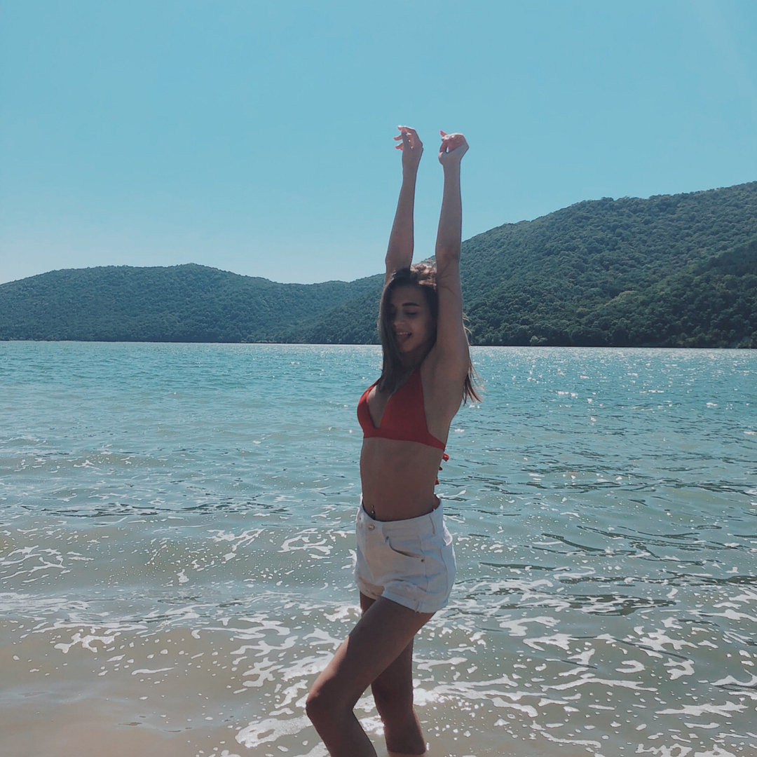 В купальнике